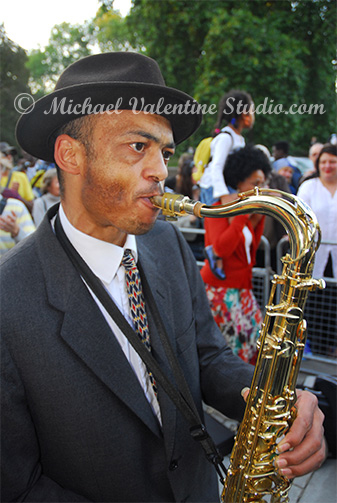 Jazz musician outside the  Royal Albert Hall